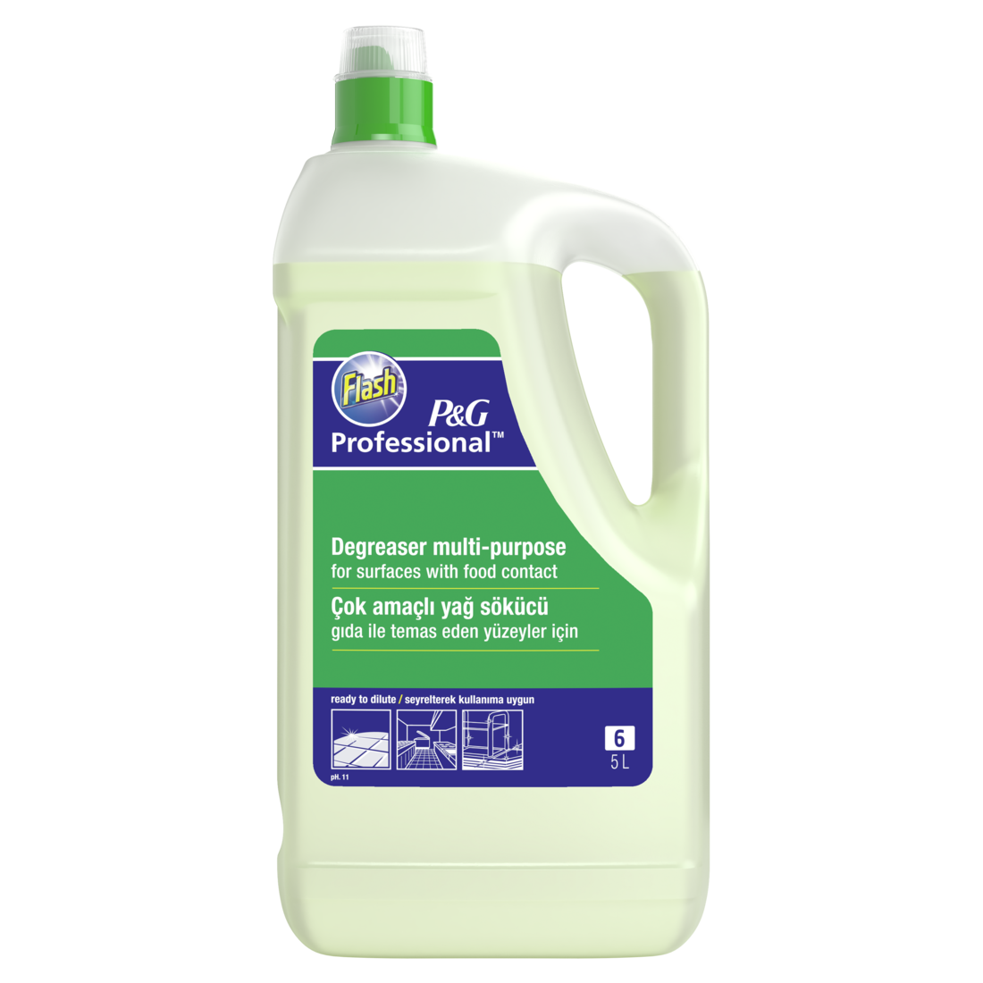 Flash Professional Disinfecting Degreaser Spray Food Contact Surfaces is a ready-to-use spray for cleaning and disinfection of interior and kitchen work surfaces including food contact surfaces (not grills), kitchen utensils and equipments.
