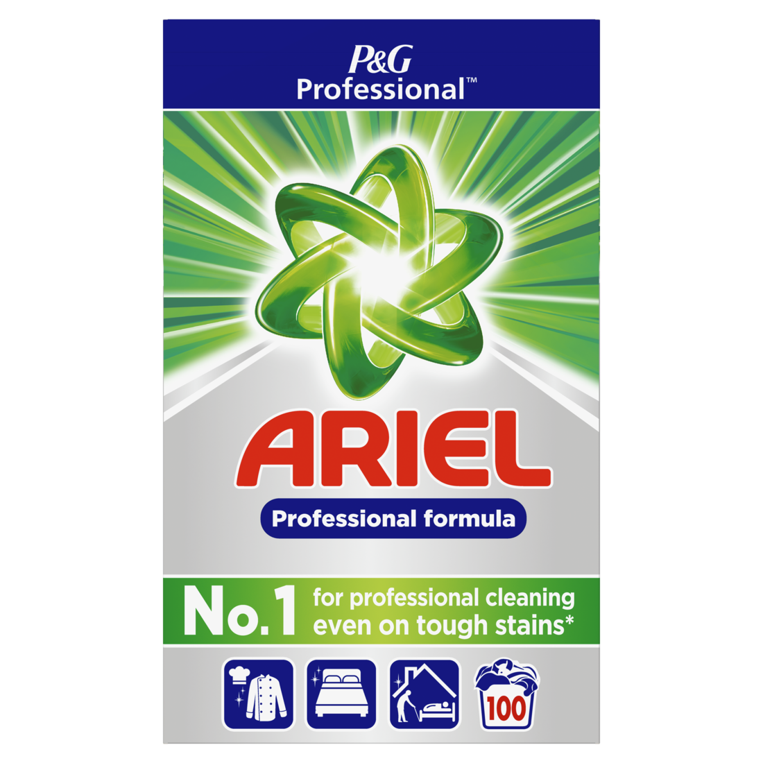 Ariel Professional Washing Powder Regular is a professional detergent specially formulated to deliver 5-star cleaning results for professionals: excellent stain removal, deep down cleaning, brilliant whiteness, great freshness and efficiency at low temperature.